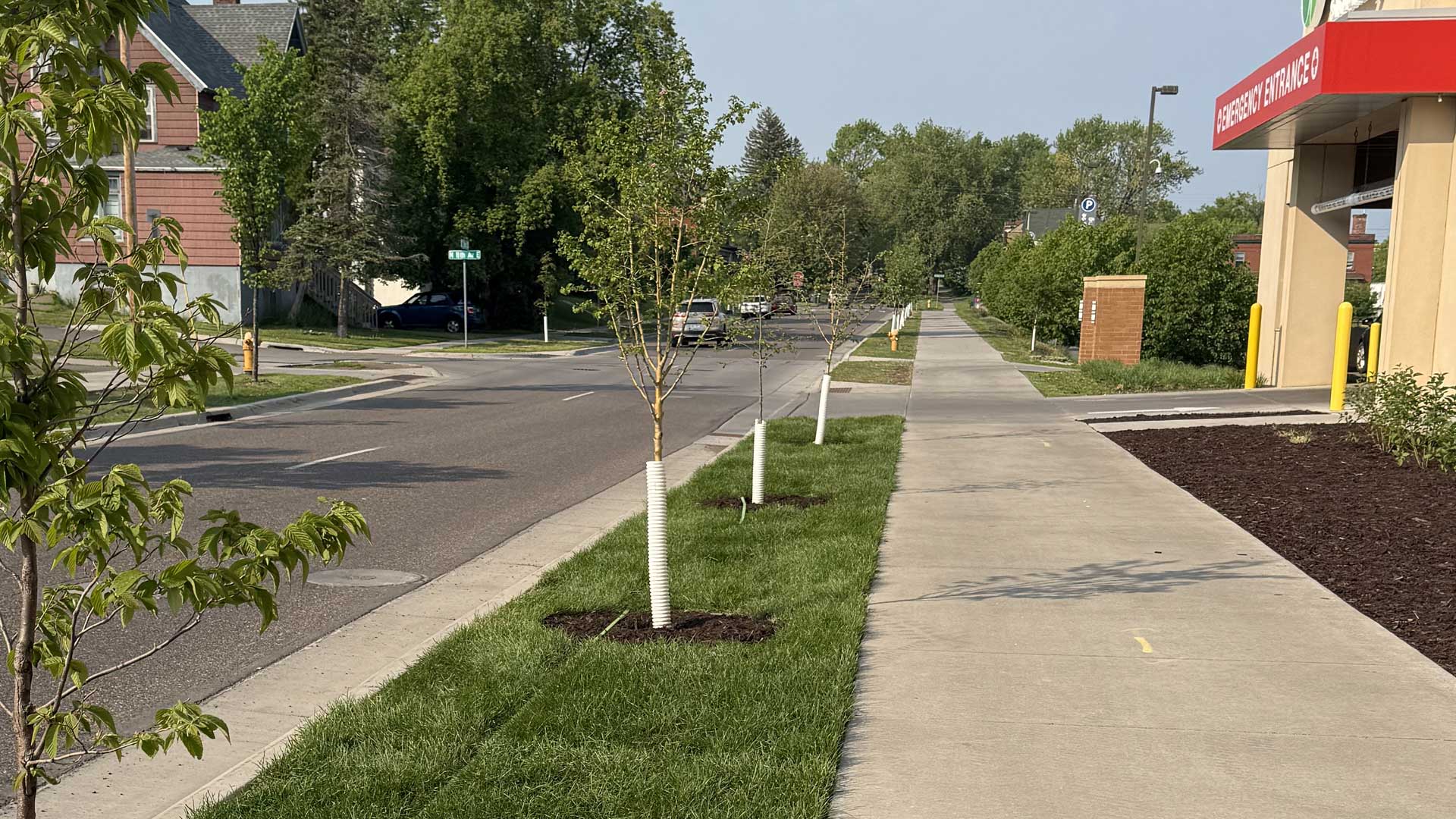 Trees growing in small islands, parking lots, or heavily compacted soils